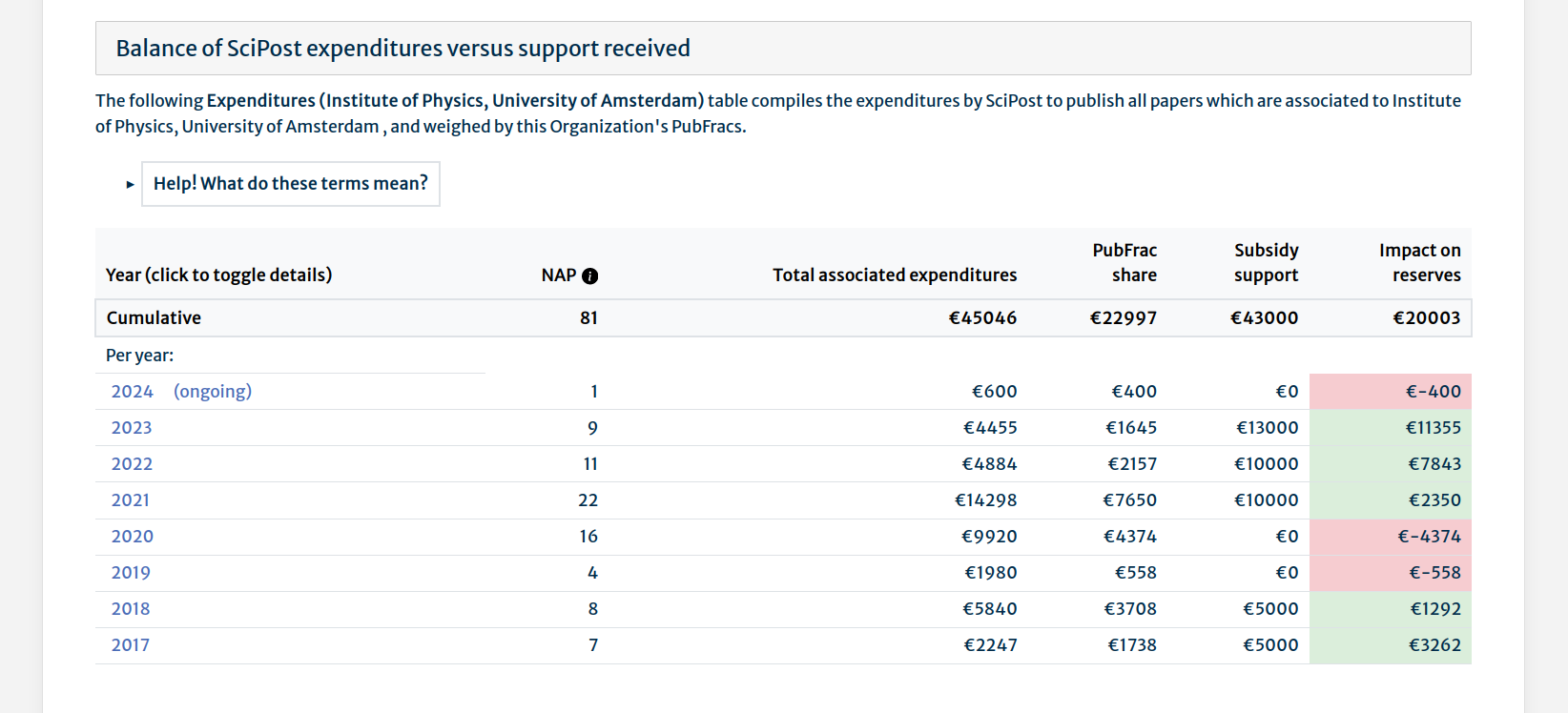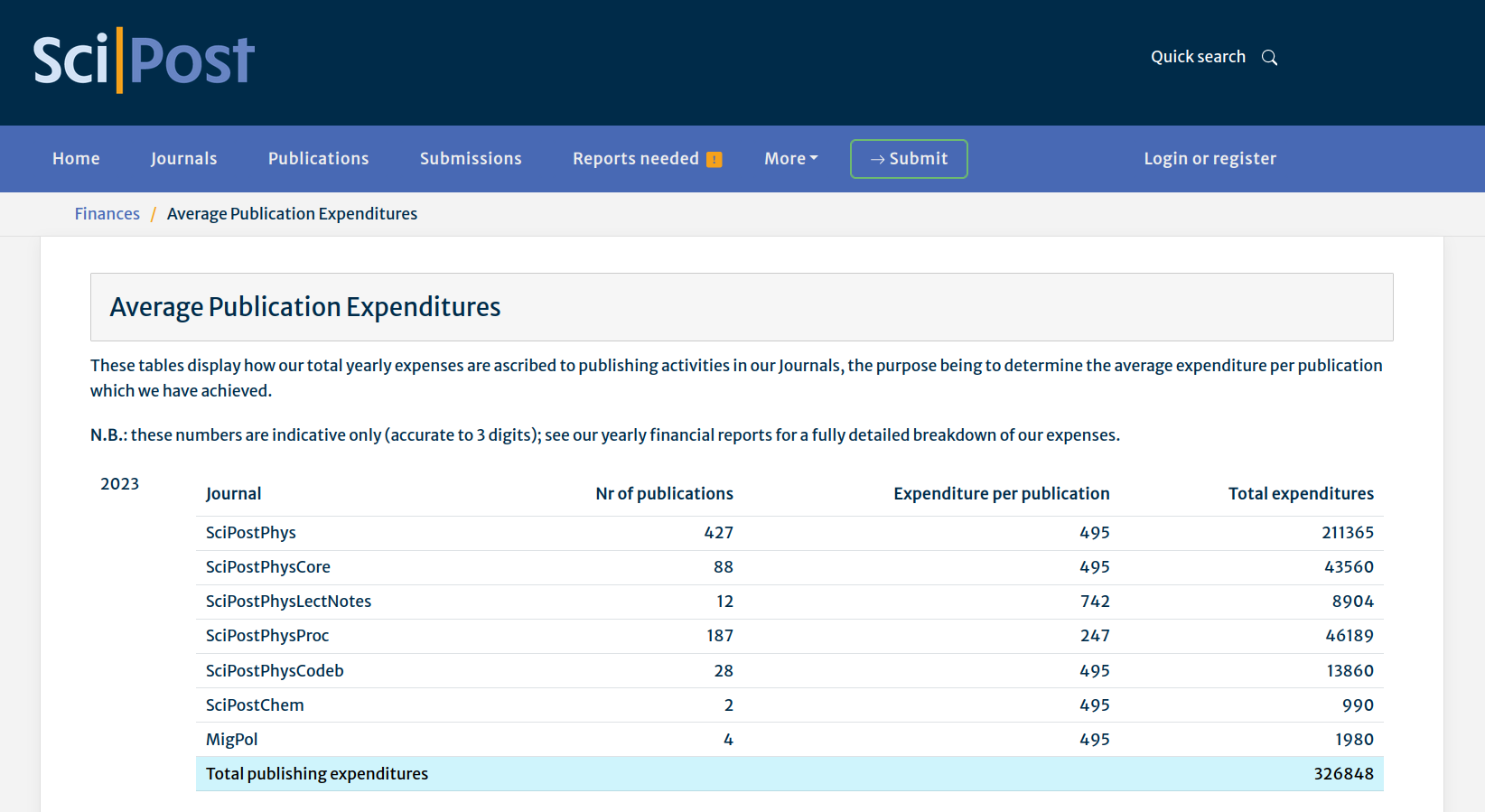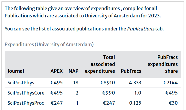 - Our Average Publication Expenditures (APEX) page providing averaged outgoings per Publication per Journal per year